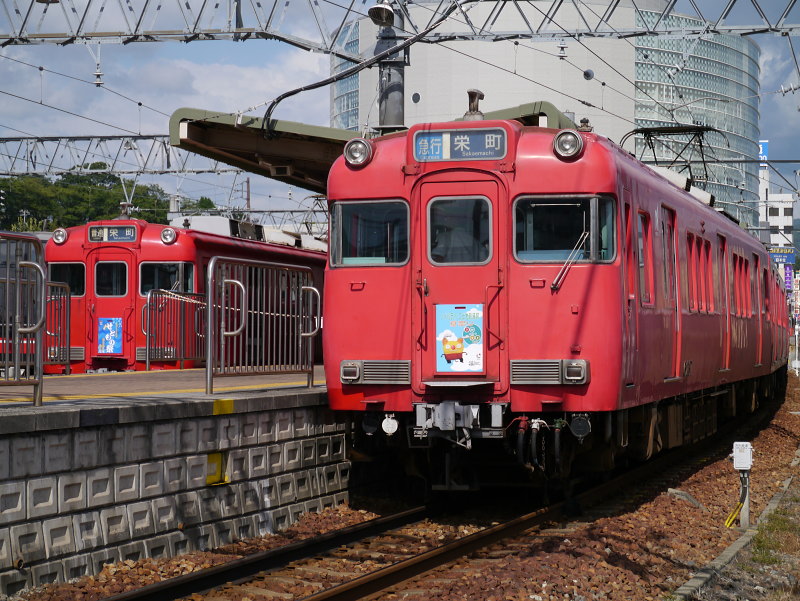8月18日・19日の2日間は栄町駅乗り入れ記念でHL行先板掲出イベントが開催され、行先系統板付き編成との並びが実現。
